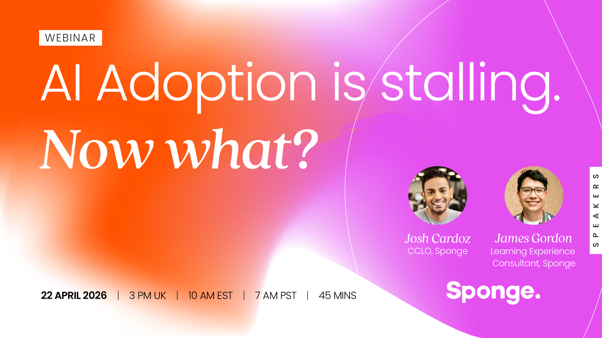 Sponge to explore why AI adoption is stalling across large organisations - and how this can be addressed - in an upcoming webinar. Hosted by Josh Cardoz and James Gordon, the session offers practical frameworks and real examples for people-led AI enablement.