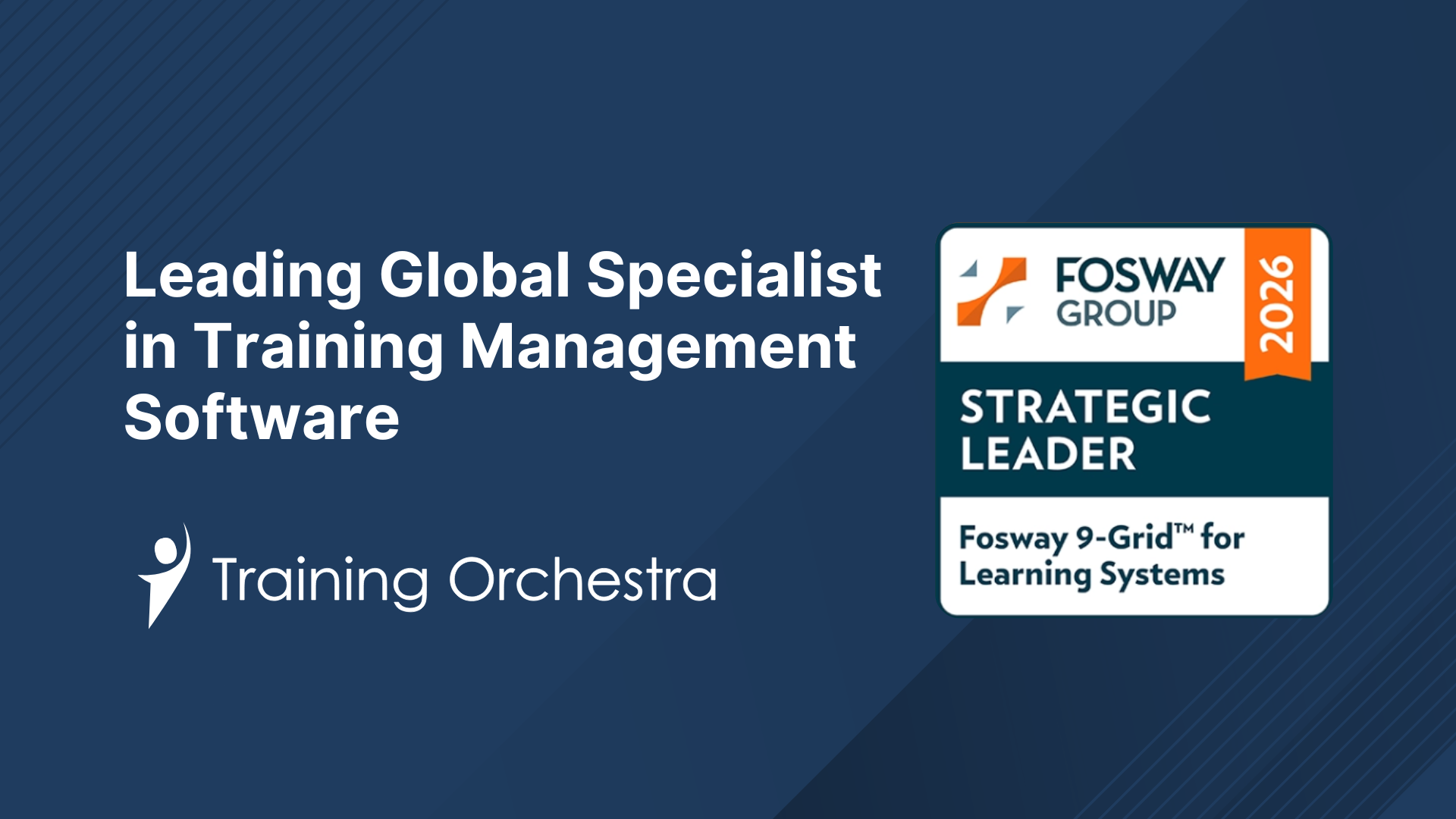 In the 2026 Fosway 9‑Grid™ for Learning Systems, Training Orchestra appears as a Learning System Specialist with a Strategic Leader rating, accelerating trajectory and higher presence. Fosway defines Specialists as solutions that focus deeply on specific areas of capability, complementing rather than replacing broader learning system suites.